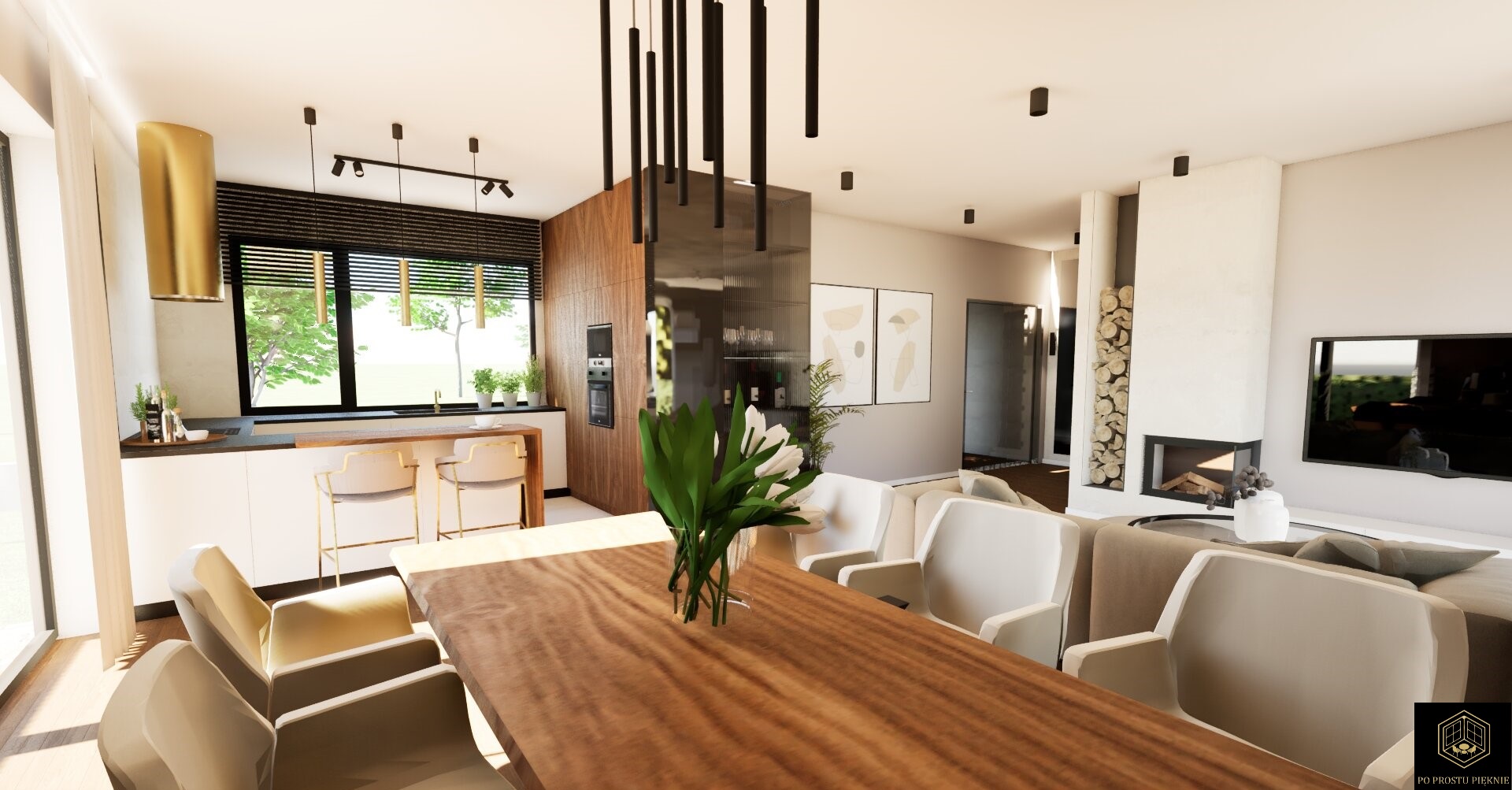 Ten projekt powstał z myślą o młodym małżeństwie, które ceni sobie elegancję, funkcjonalność oraz… wspólne chwile z bliskimi. Otwarta przestrzeń sprzyja spotkaniom z przyjaciółmi, a detale i przemyślane rozwiązania podkreślają indywidualny styl domowników. To miejsce stworzone z sercem – dla ludzi, którzy uwielbiają celebrować codzienność.
