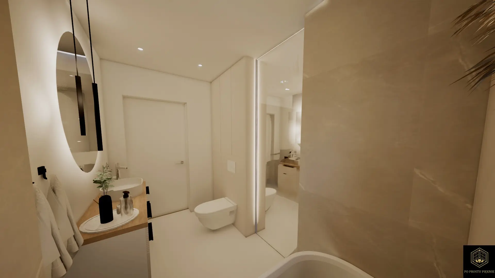 Projekt salonu i łazienki w beżach Gdańsk